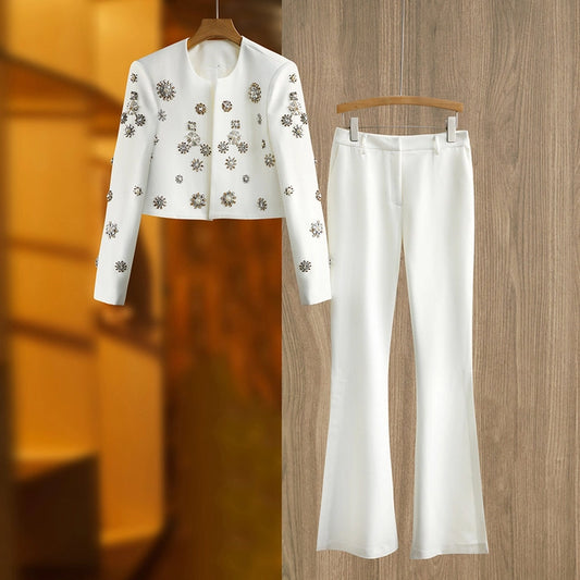 Women Embellished Blazer and Flare Pants Set