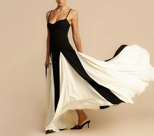 Chic B&W Beach Suspender Maxi Dress