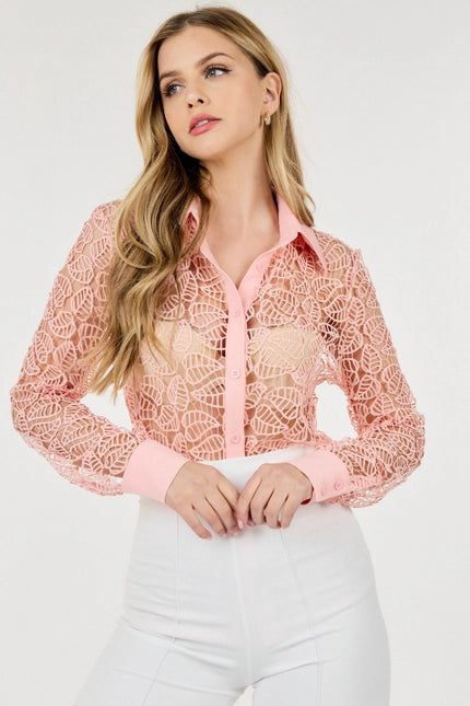 Collar Neck Long Sleeve Lace Top