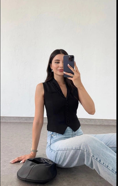 Chic Sleveless Vest with Buttons- Elegant Suit Vest Womens