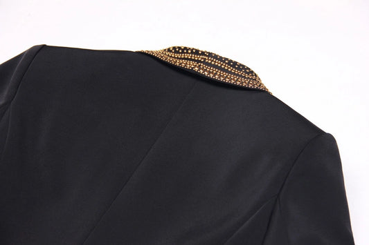 Chic Green-Collar Blazer with Hot Metal Accent