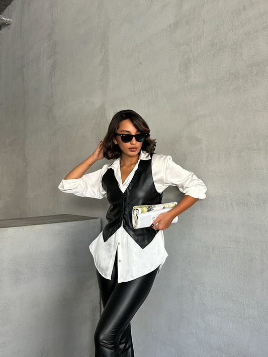Buttoned Leather Vest - Black