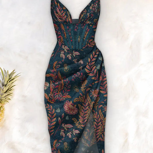 Contrast Color Flower Print Long Sleeves Loose Coat