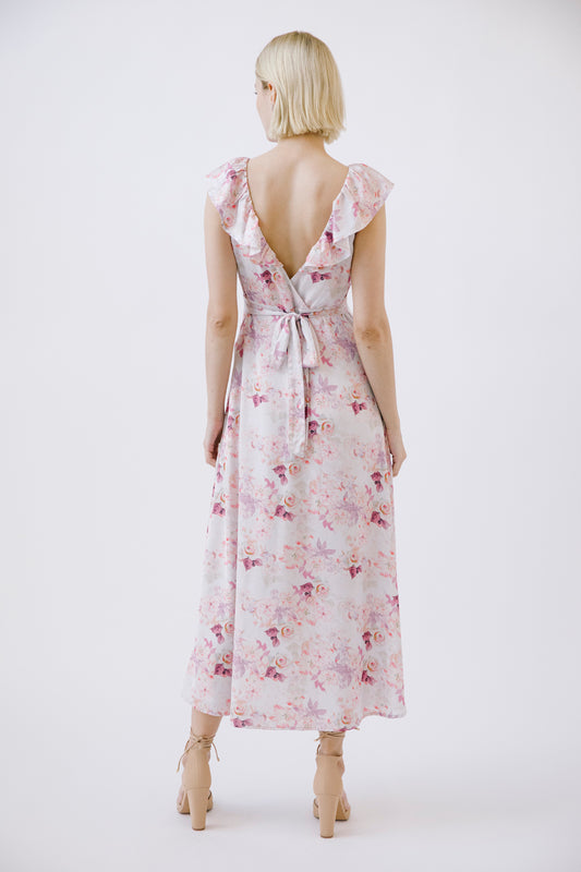 Cut-Out Ruffled Maxi Halter Dress