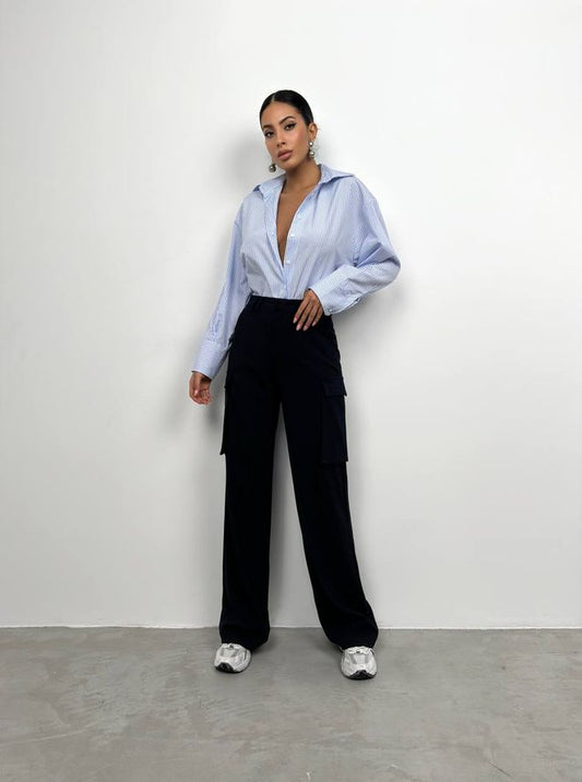 Striped Oversize Shirt - Blue & White