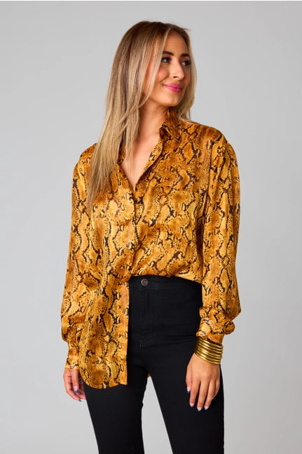 Portia Snake Charmer Long Sleeve Button Up Top