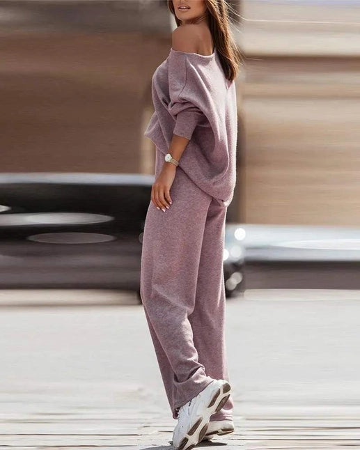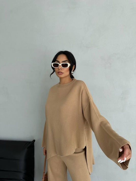 CONTRAST Color Shortsleeved Trousers Sweater Suit
