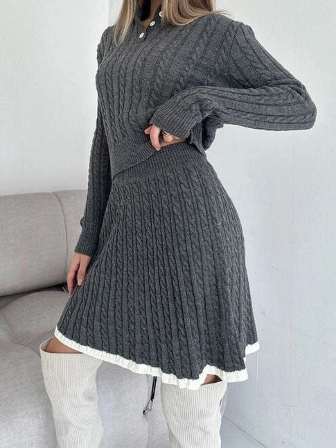 Ribbed Buttoned Sweater and Mini Skirt Set