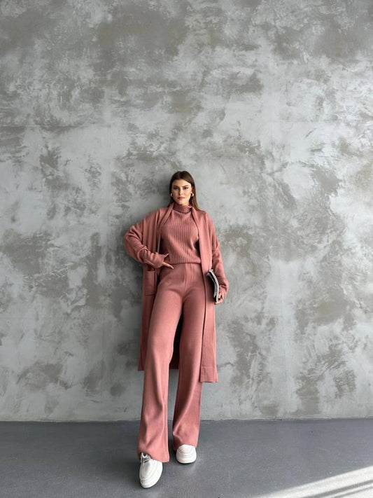 Black,Solid Color Knit Long Sleeve Sweater Pant Lounge Set