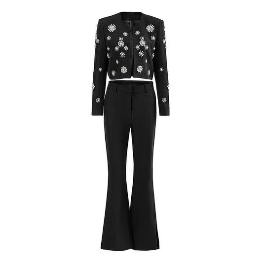Women Embellished Blazer and Flare Pants Set