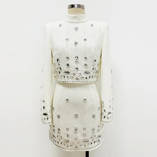 Delaney White Rhinestone Top and Skirt Two Piece Set