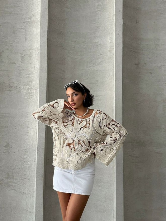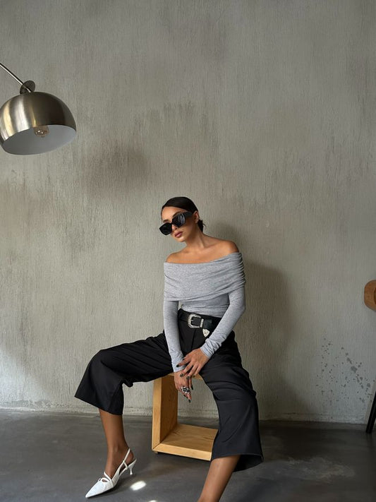 Gray Madonna Collar Lycra Viscose Long Sleeve Blouse