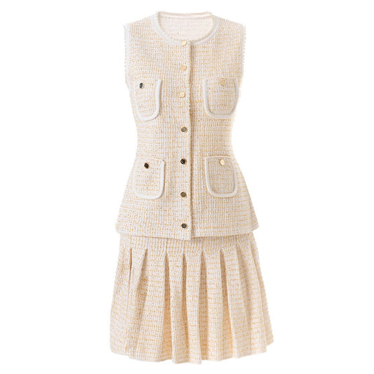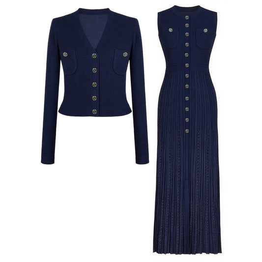 Chic Tweed Knit Cardigan Jacket & Trimmed Pants Set