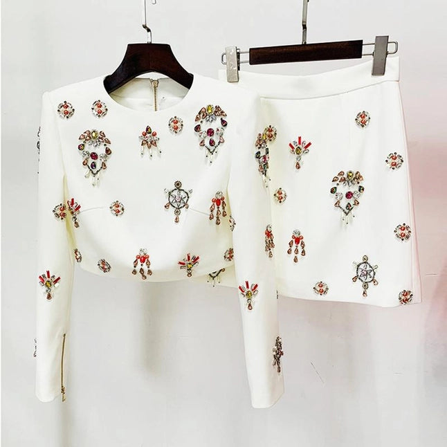 Delaney White Rhinestone Top and Skirt Two Piece Set
